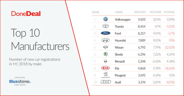 Here Are Ireland S Top 10 Car Brands For 2018 So Far By New Car
